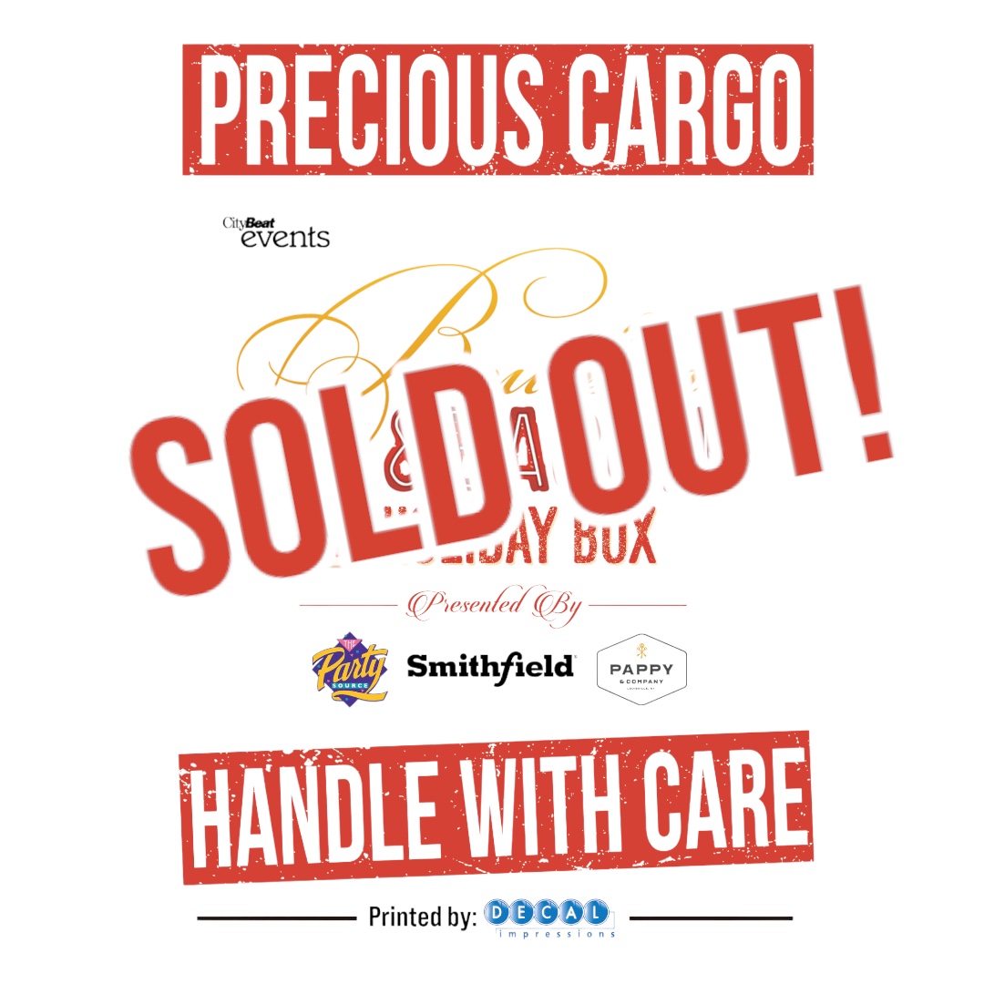 - Box pick up will be on Tuesday 12/12/23 from 10am-7pm at The Party Source. Details will be sent in an email to ticket purchasers. Must be 21+ and have a valid I.D. at pick up